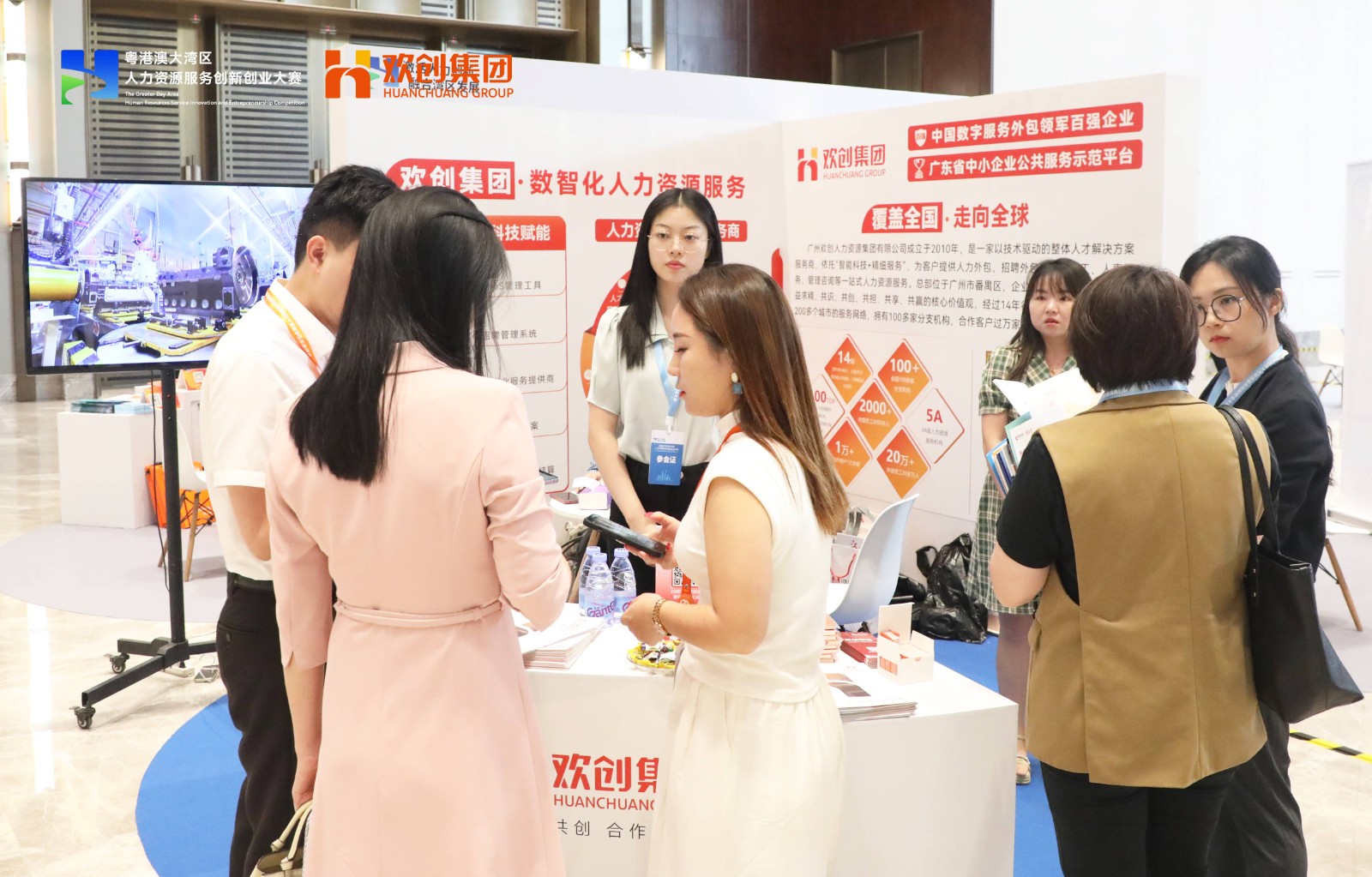 10月11日,首届粤港澳大湾区人力资源服务创新创业大赛决赛在广州白云国际会议中心盛大举行,大会由广东省人力资源和社会保障厅、广州市人民政府主办。此次盛会汇聚了来自粤港澳大湾区及多个地区的人力资源服务机构、知名企业、专家学者,凝聚行业智慧与创新力量,共同构建一个高端的展示与交流平台。欢创集团受邀作为供需对接参展商,亮相核心产品和创新成果,受到了众多来宾的关注。