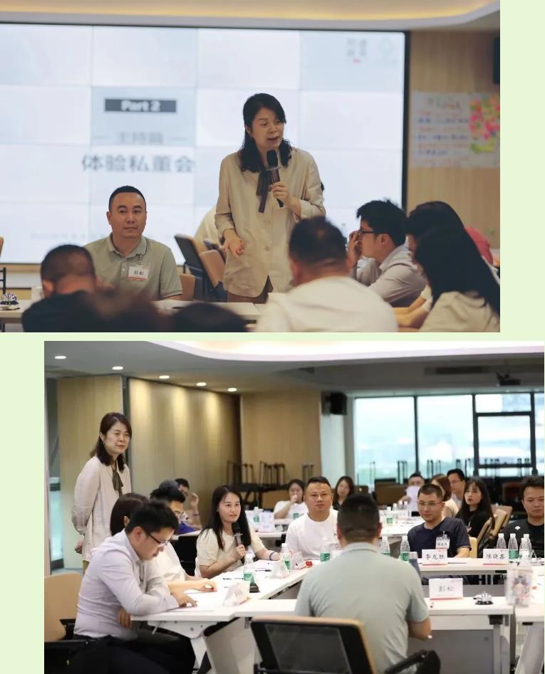 管理人员在本环节中分小组以计分比赛形式进行私董会。每个私董会都包括主持人、案主和私董成员,每个成员各司其职,并分为三个层次进行模拟训练——主持(让案主眼睛发光)、引导(让私董成员眼睛发光)、修炼(让主持人眼睛发光)。课程中产生一批公司内部的私董会主持人,未来将主力解决公司在新项目立项、空降兵存活、团队文化建设等方面的困惑。