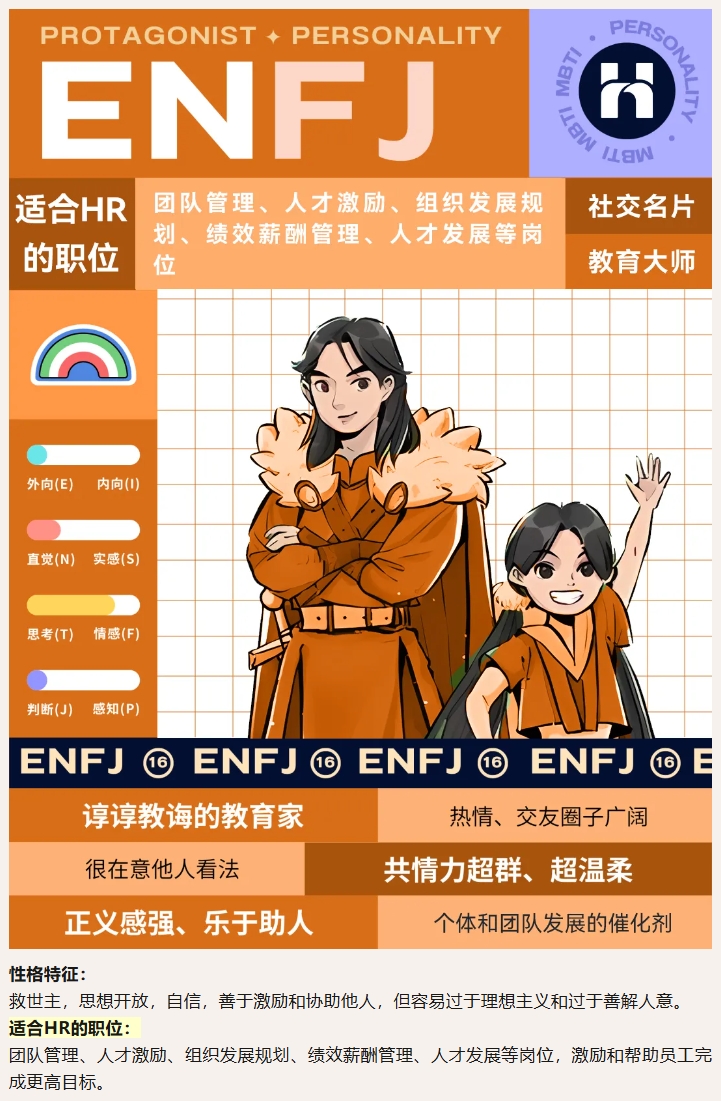 关注公众号【欢创人力集团】,在消息框发送关键词【职业测试】即可免费测试你的MBTI,滑动文章在以下16个类型对号入座,了解适合自己的人力资源岗位~。